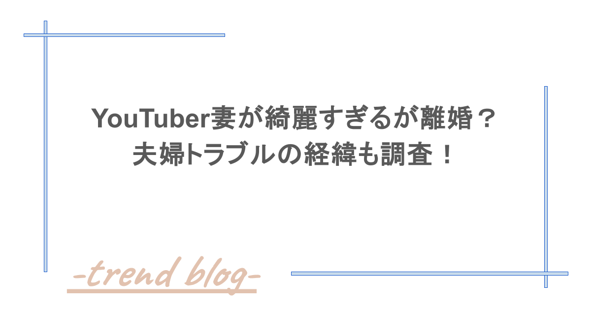 YouTuber「妻が綺麗すぎる」が離婚していた